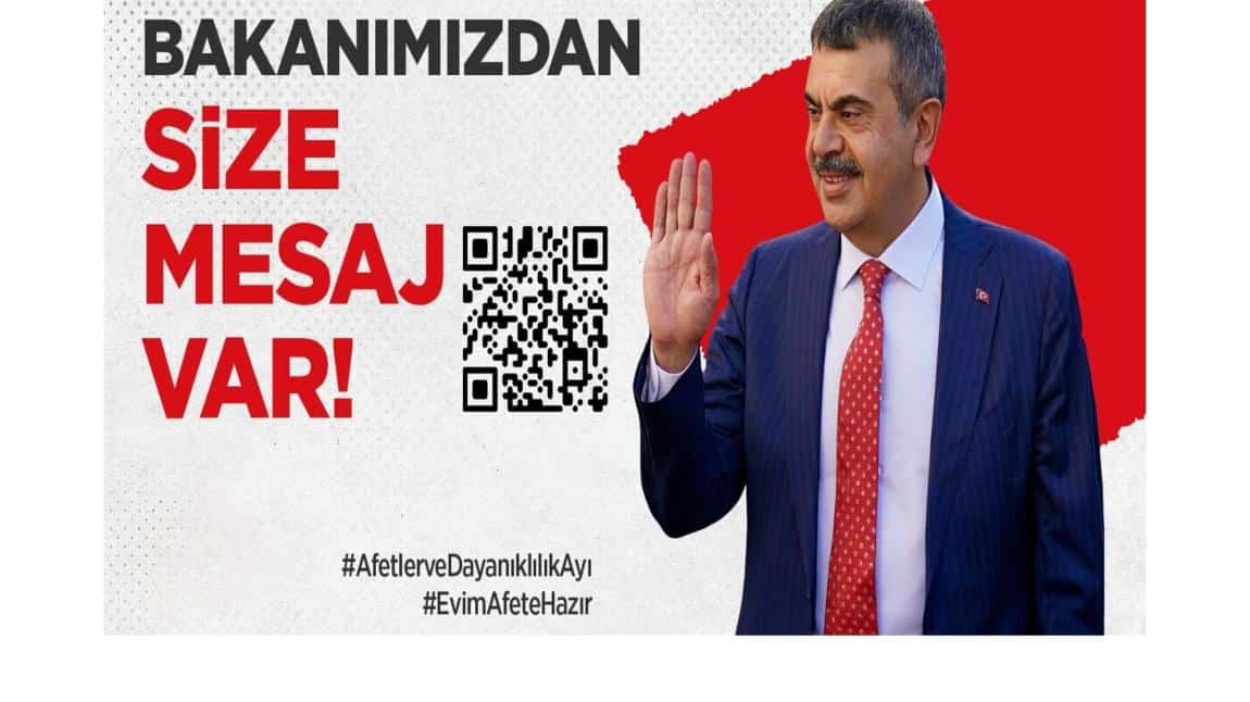 Afetler ve Dayanıklılık Ayı çerçevesinde, öğrencilerde ve toplumda afetlere karşı farkındalığı artırmak amacıyla Bakan Yusuf Tekin'in video mesajını içeren "Afet ve Acil Durum Kartı" hazırlandı.